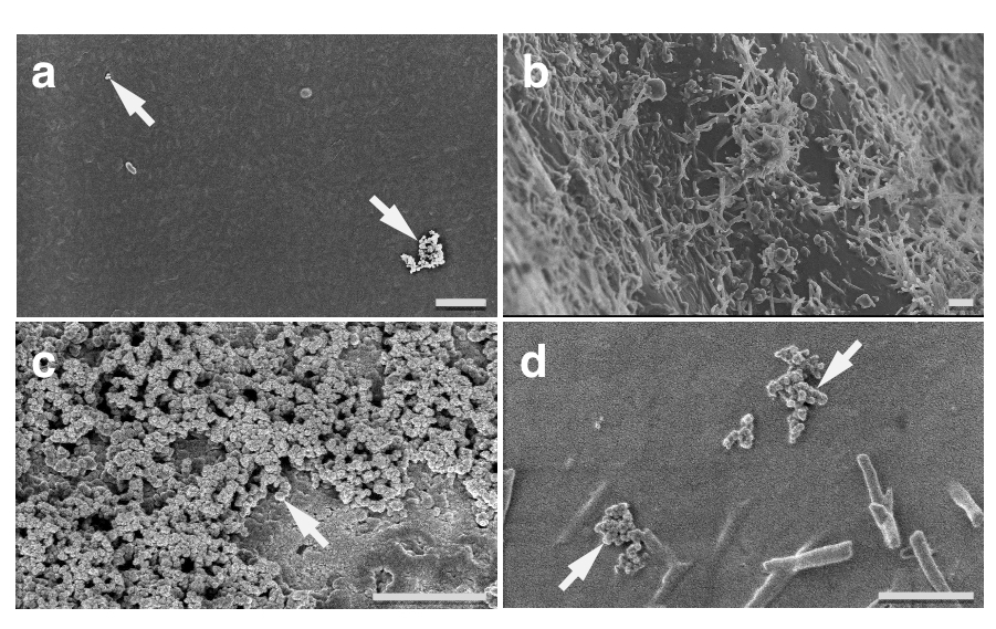 Visualization of artificially deposited submicron-sized aerosol particles on the surfaces of leaves/needles in trees 樹木の葉表面に任意的に微粒子を沈着させ、それを「可視化」する技術