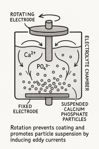 リン酸カルシウムは、触媒や生物システム用原料などとして重要ですが、粒子サイズや形を均一に作るのは困難でした。私たちは、「回転電極」を用いた電気化学的合成法を開発し、この課題を解決しました。Calcium phosphate Ca3(PO4)2 is an important material used in catalysts and biosystems. However, uniformly controlling its particle size and shape has been difficult. We developed an electrochemical synthesis method using a “rotating electrode” to address this challenge.