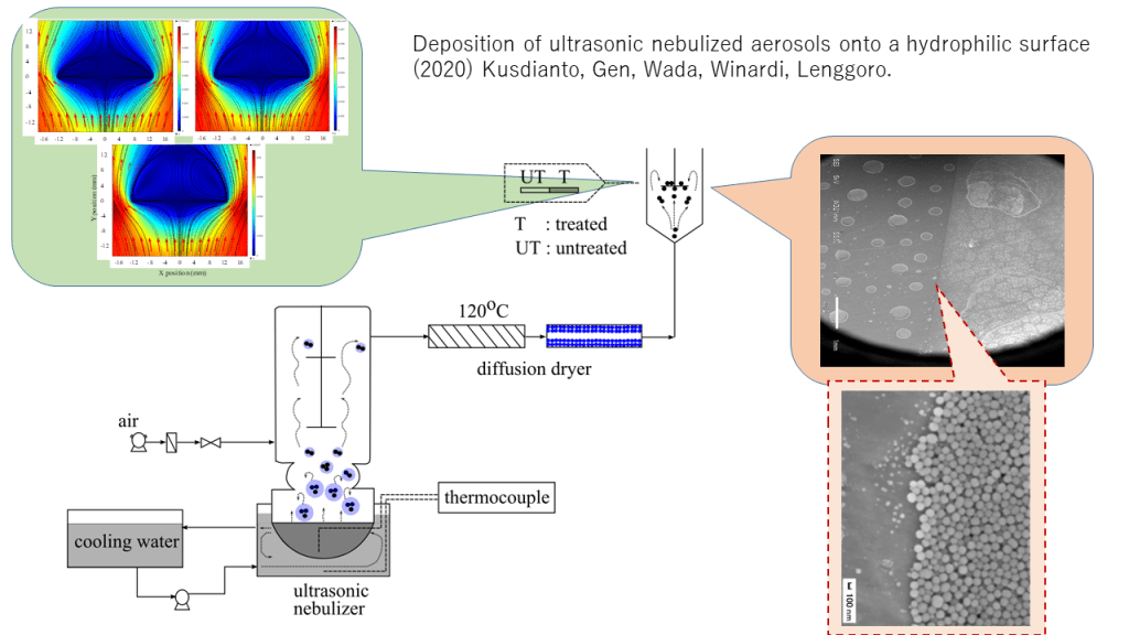 Related article: Area-selective deposition of charged particles derived from colloidal aerosol droplets on a surface with different hydrophilic levels. (2014) Kusdianto, Gen, Lenggoro(帯電された微小液滴の沈着の場合)