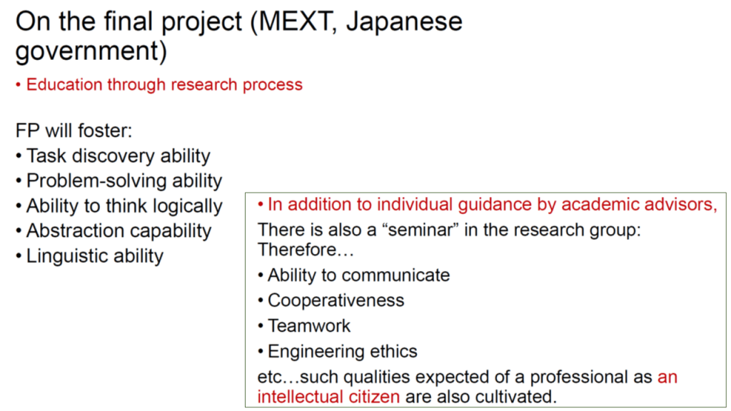 Role of final year project, Student initiative, Role of Journal publication, Cross-disciplinary research, Examples of student careers., etc…