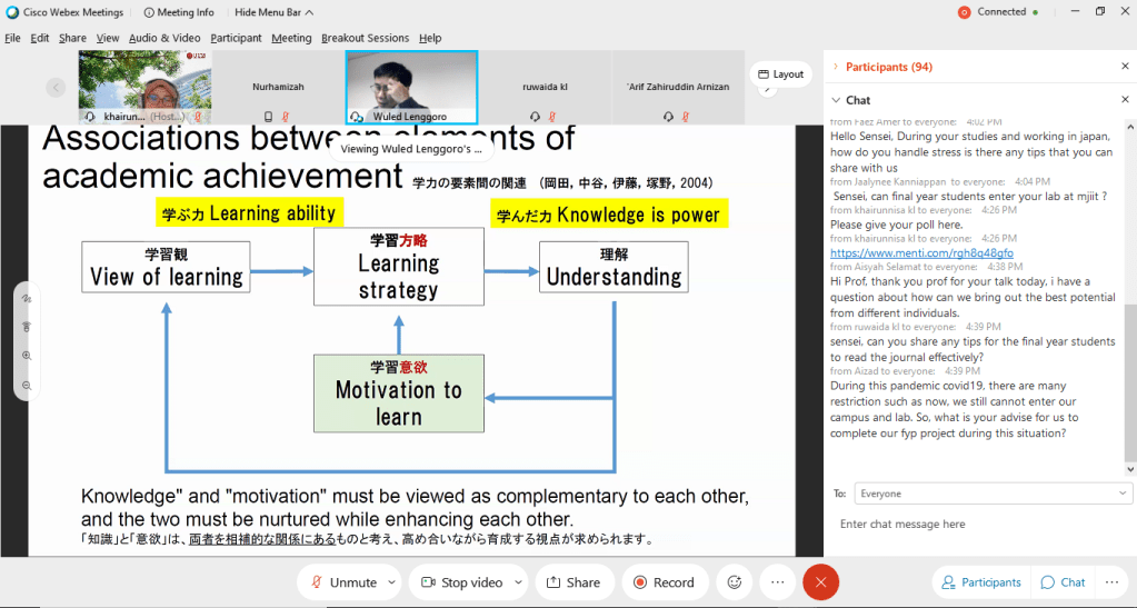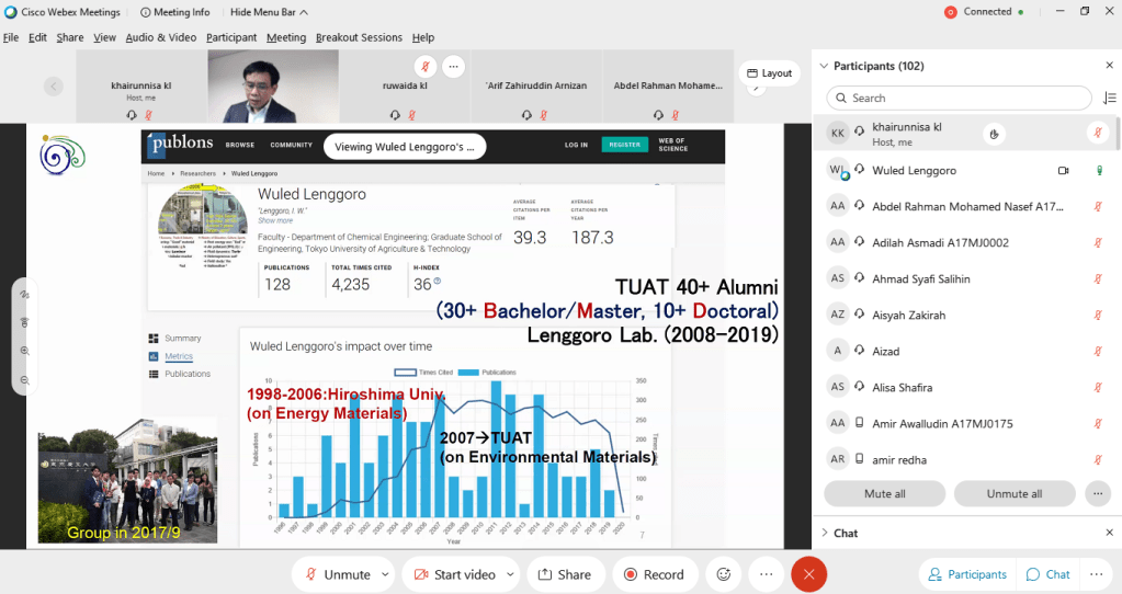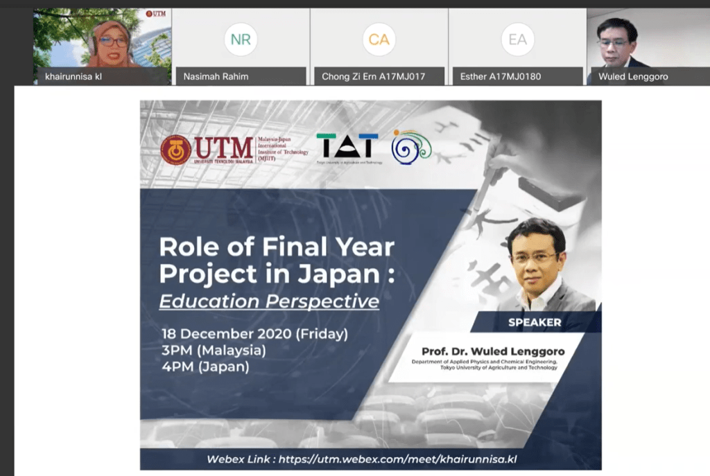 18 Dec. 2020: A special class (90 minutes) for Final-Year undergrad. students (Chemical Engineering) at MJIIT, UTM