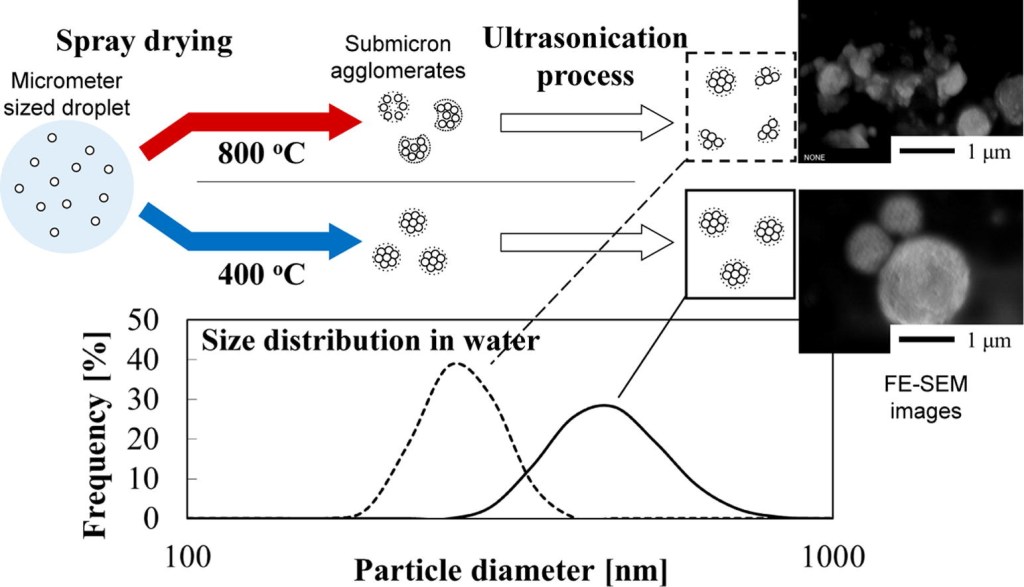 When nanoparticles are dried into powder, they often stick together and form agglomerates—clumps that are hard to break apart. ナノ粒子を乾燥して粉末にすると、粒子同士が強く結合し、凝集体(かたまり)になります。これを壊すのは難しい。