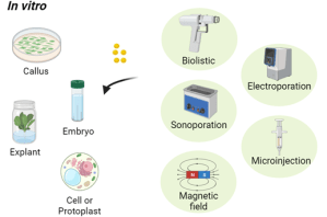 受動型デリバリー(Passive delivery): ナノ粒子自身の特性(サイズ、表面電荷、疎水性など)を利用して植物組織への移行を促す手法。