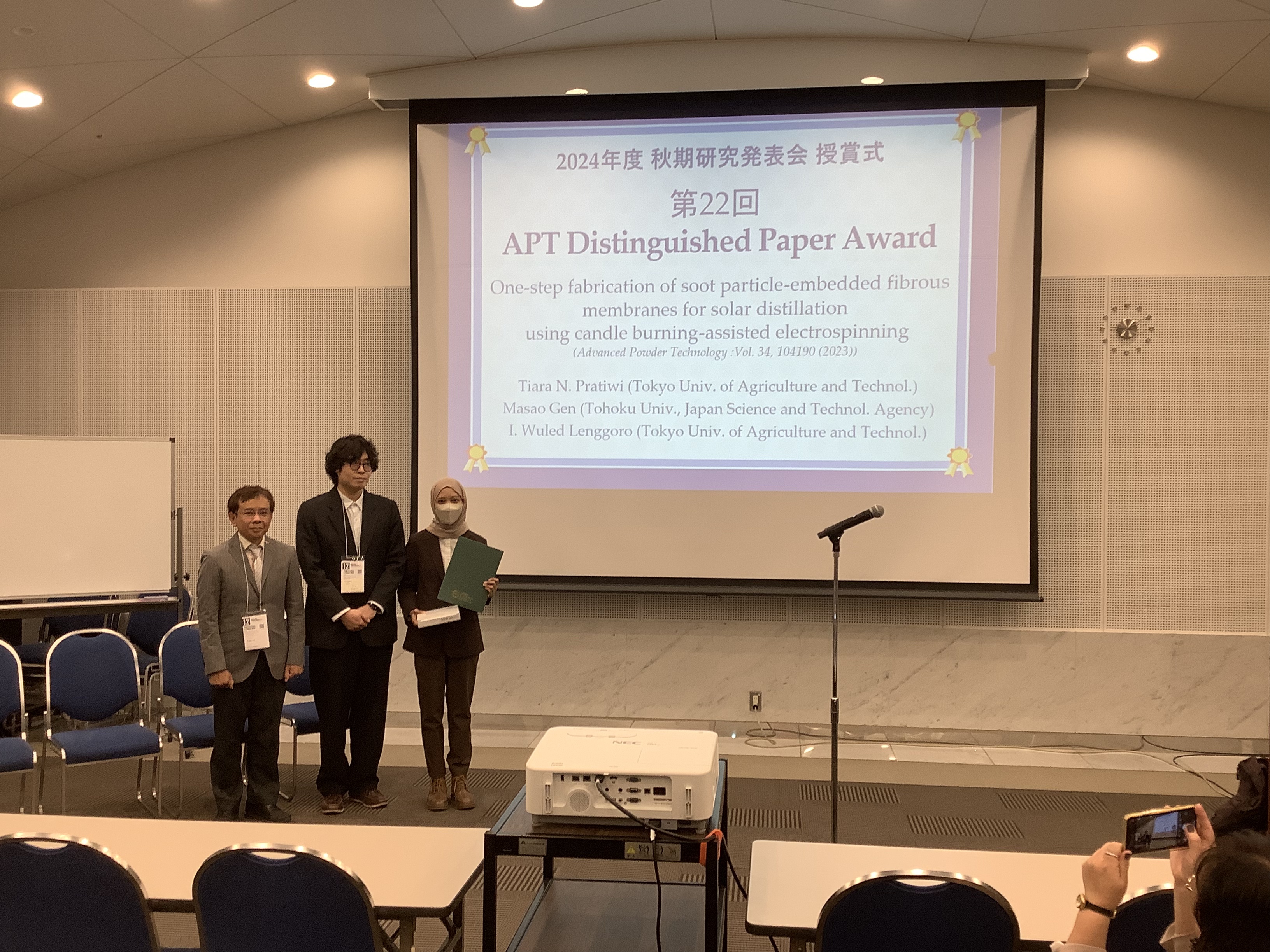 これらの先進的な研究成果は,今後の粉体工学の発展に寄与するところが多大であると考えられ,粉体工学会 APT 賞(APT Distinguished Paper Award)に値すると判断した。These pioneering research results are considered to greatly contribute to the future development of particle technology and were deemed worthy of the APT Award (APT Distinguished Paper Award) from the Society of Powder Technology, Japan.”