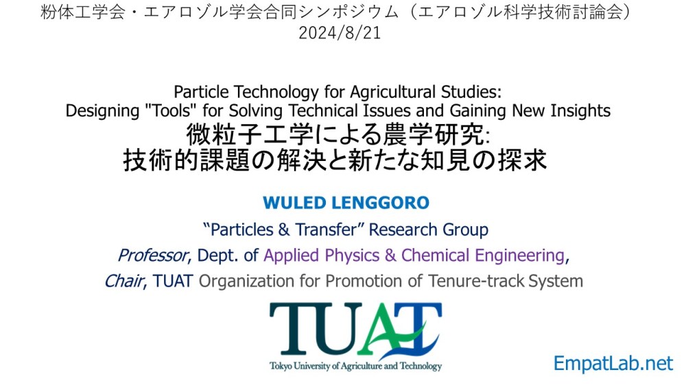 Particle Technology for Agricultural Studies: Designing “Tools” for Solving Technical Issues and Gaining New Insights 微粒子工学による農学研究: 技術的課題の解決と新たな知見の探求 (Wuled Lenggoro)