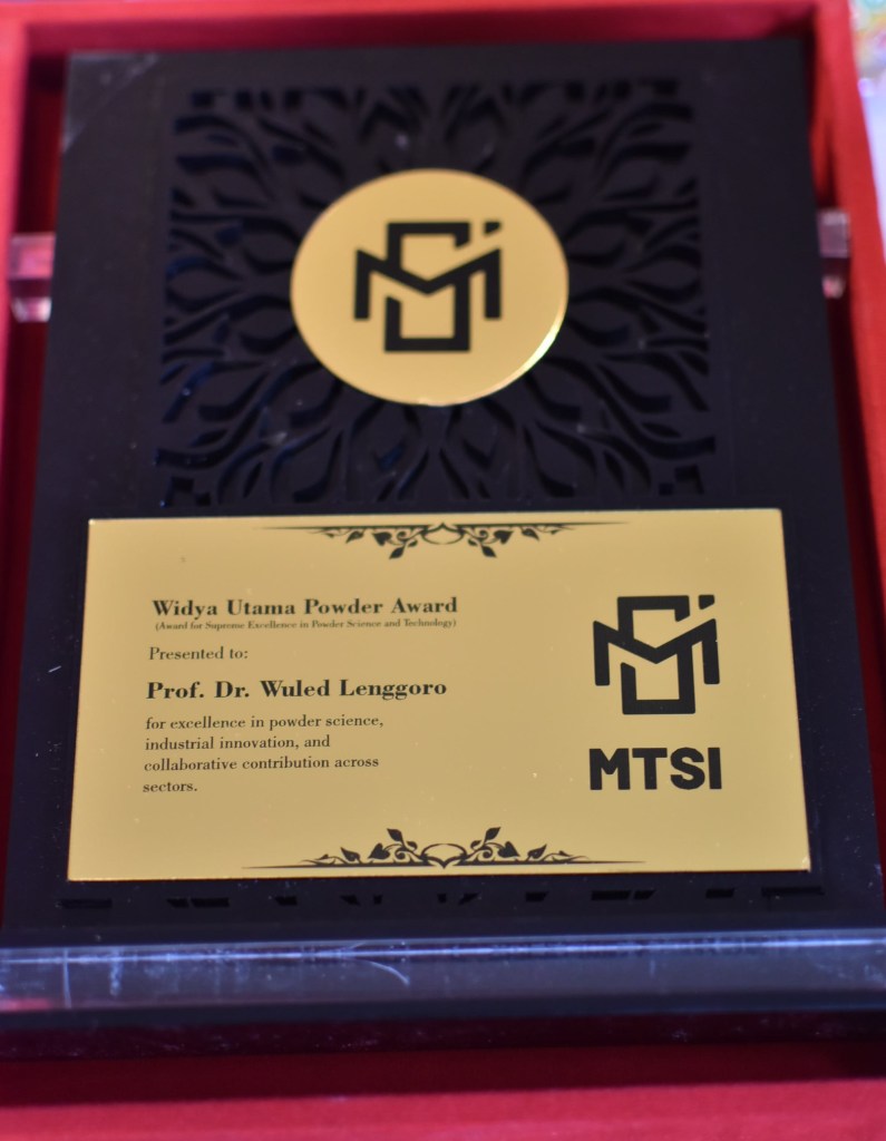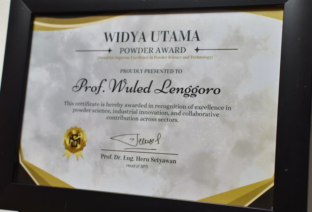 Prof. Lenggoro was recently awarded the “Widya Utama Powder Award” from the “Society for Powder Technology Indonesia” (Indonesia Society of Powder Technology). This award recognizes contributions to powder science, industrial innovation, and cross-sectoral collaboration.