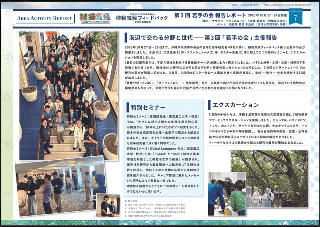ONLINE: 2025/10/28 (40+20 min). 文部科学省 科学研究費補助金 学術変革領域研究A 「植物気候フィードバック BVOC 気候調節」第3回若手の会特別セミナー