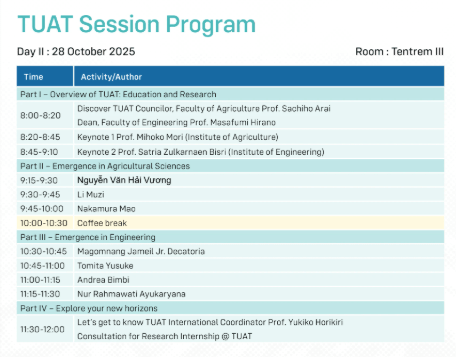 This event marked the first TUAT session at an international conference outside Japan.