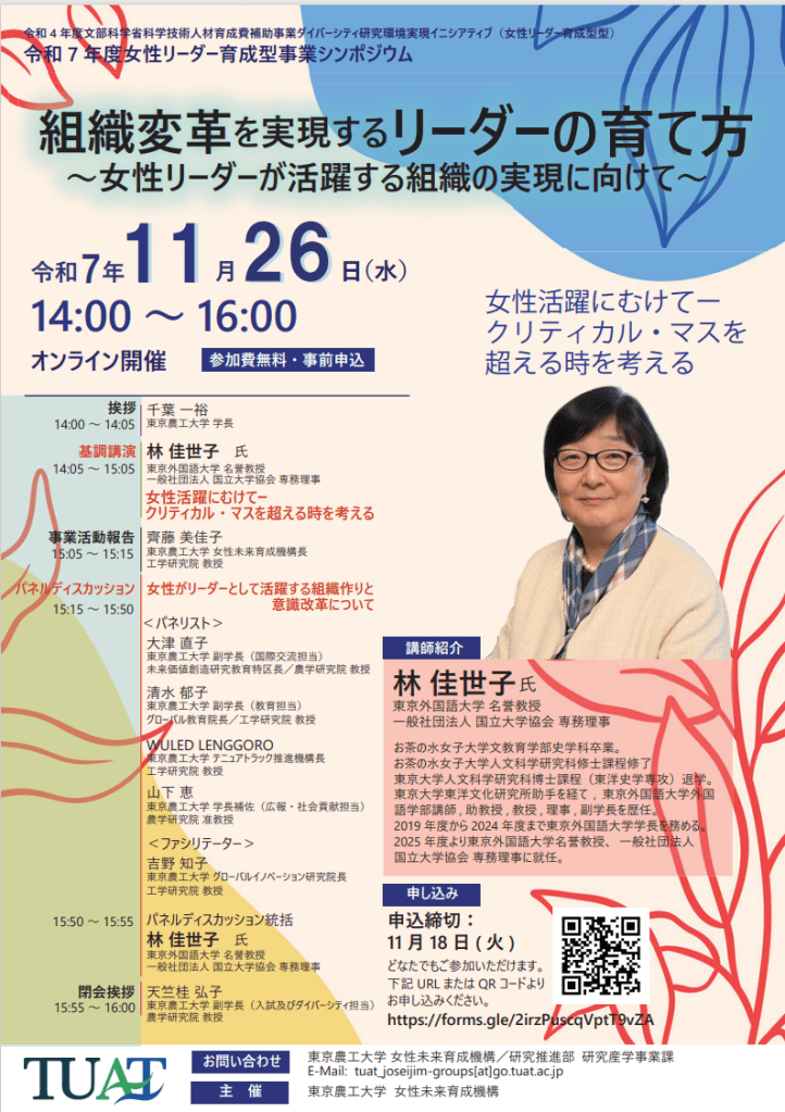 [イベント] 令和7年度 女性リーダー育成型事業シンポジウムにレンゴロ教授が登壇します