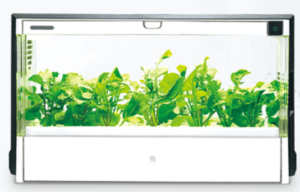 - U-ING GreenFarmCube 水耕栽培器 Hydroponic unit. Integrated white LEDs (10,000 lux, 16 h/day), top exhaust fan with filter, and an air pump ensure light, airflow, and oxygenation for reliable growth of 23 vegetable varieties. User-friendly top control panel with timer and day counter, removable two-part lid for easy maintenance, and a buoyant seedling panel with a pickup hole to observe roots. 水耕栽培器。白色LED(10,000ルクス×16時間/日)、天面排気ファン(フィルター付)とエアポンプで光・換気・溶存酸素を確保し、23品種の野菜を安定栽培します。操作は天面の統合パネル(タイマー・日めくりカウンター)。浮遊式苗床パネルのピックアップホールで根の観察が可能。http://www.greenfarm.uing.u-tc.co.jp/