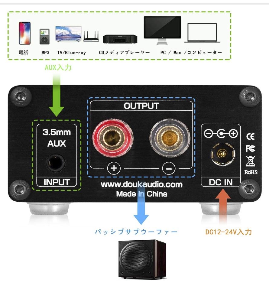 - Amplifier (mono) max. 100 W (connected with a speaker)
