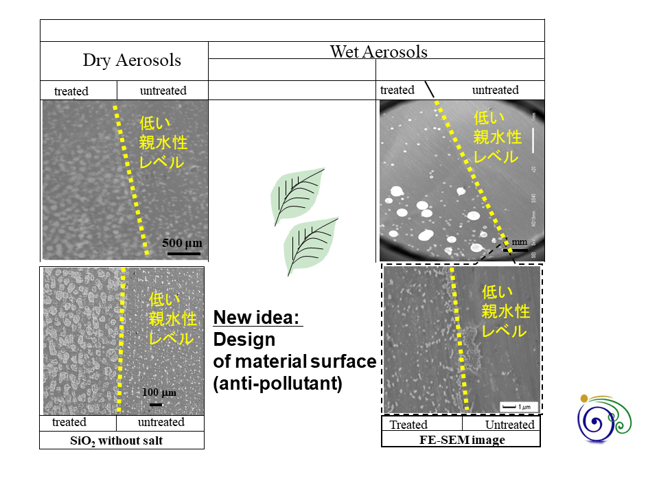 応用例: パターン化技術、防塵表面の開発、環境中表面における大気中浮遊粒子の沈着機構の解明。Possible applications: Patterning. Development of dust-free surfaces. Elucidation of the deposition mechanism of airborne particles on environmental surfaces.