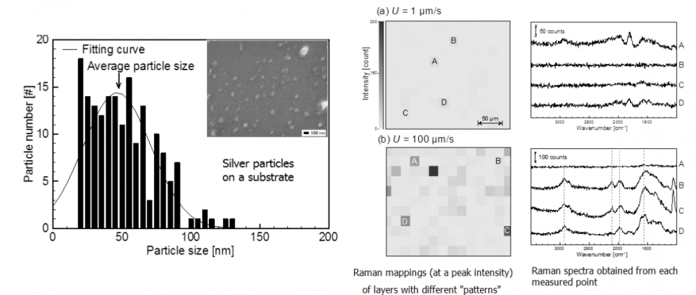 気中微粒子を用いた100nm未満の分子分布マッピング技術。SERS法で表面上の分子パターンを可視化。A <100 nm resolution mapping technology using airborne aerosol probes for organic molecular layers, visualizing surface molecular patterns with SERS. >> More.