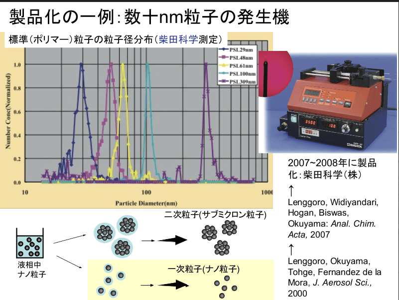 レンゴロ博士が広島大学在籍中(1998-2006年、奥山喜久夫教授と共同研究室を運営)に開発した、製品化を含む主要な研究成果を以下にご紹介します。 Below is a list of major research achievements, including commercialized products, developed by Dr. Wuled Lenggoro during his tenure at Hiroshima University (1998-2006), where he co-managed a lab with Prof. K. Okuyama.