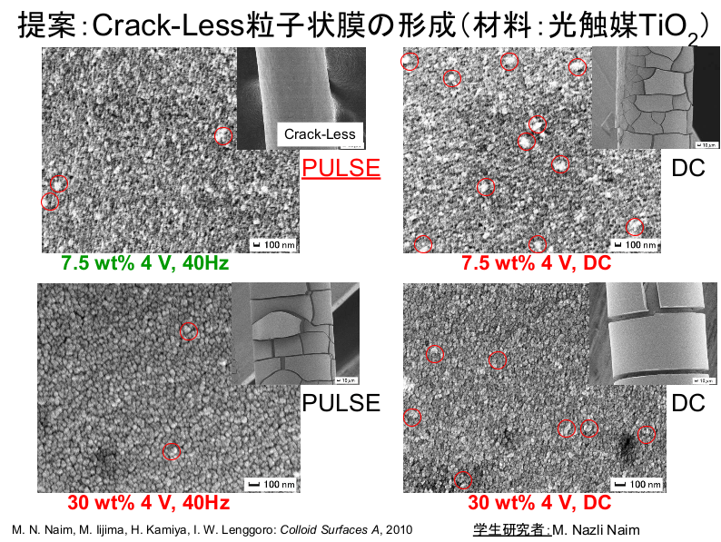 2008 Pulse-Electrophoretic Nanofilm Deposition (PEND) for Dense Aqueous Colloids. 高密度液相コロイド用パルス型電気泳膜形成技術